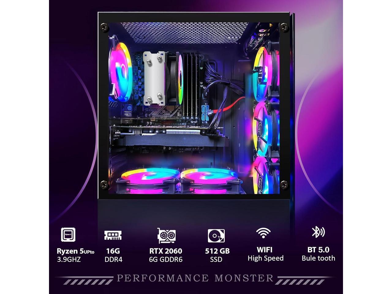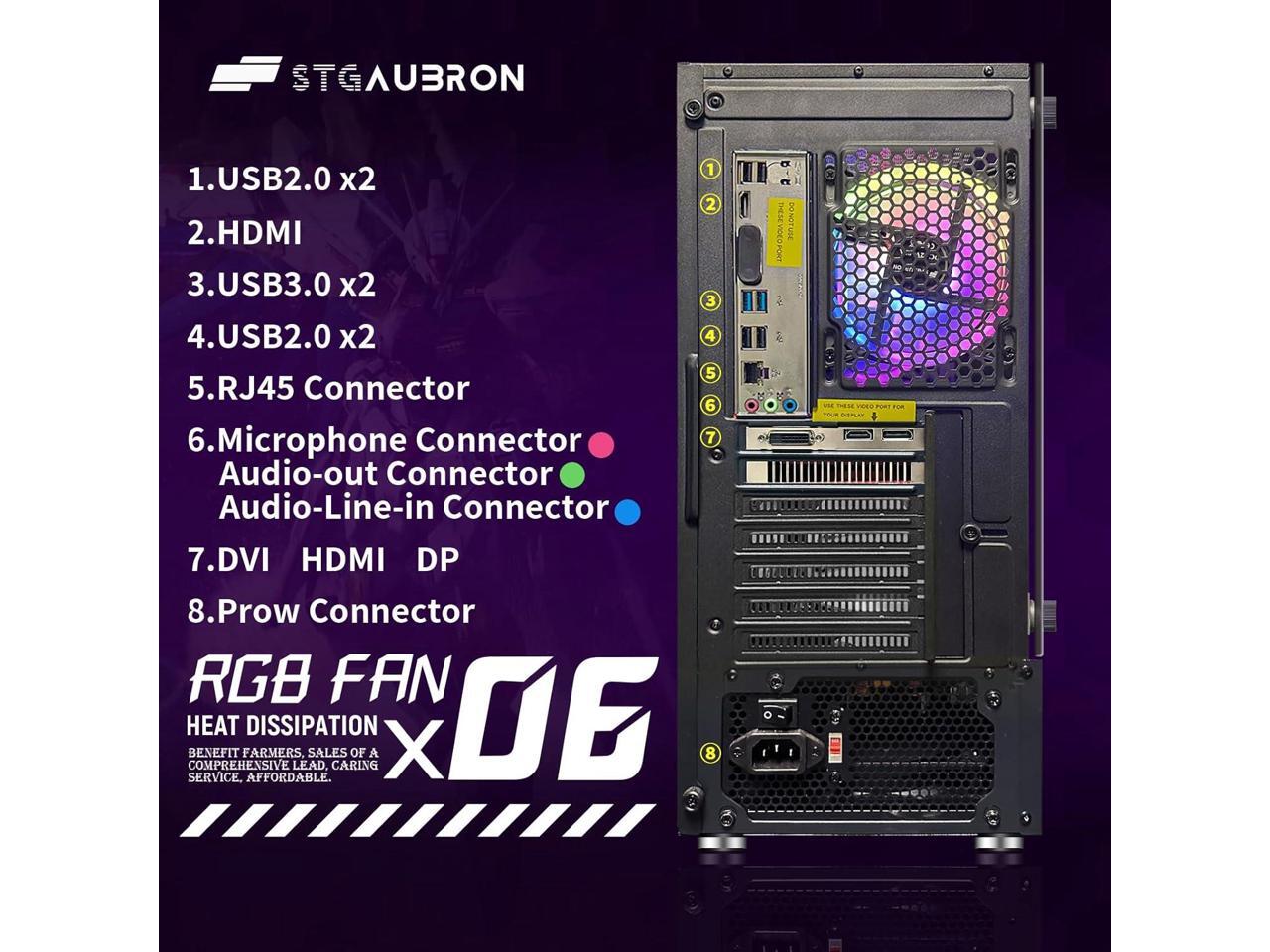 STGAubron Gaming Desktop PC, AMD Ryzen 5 PRO 2600 up to 3.9G, 16G DDR4, 512G SSD, GeForce RTX 2060 6G GDDR6, 600M WiFi, BT 5.0, RGB Fan x 6, RGB Keyboard & Mouse & Mouse Pad, W11H64