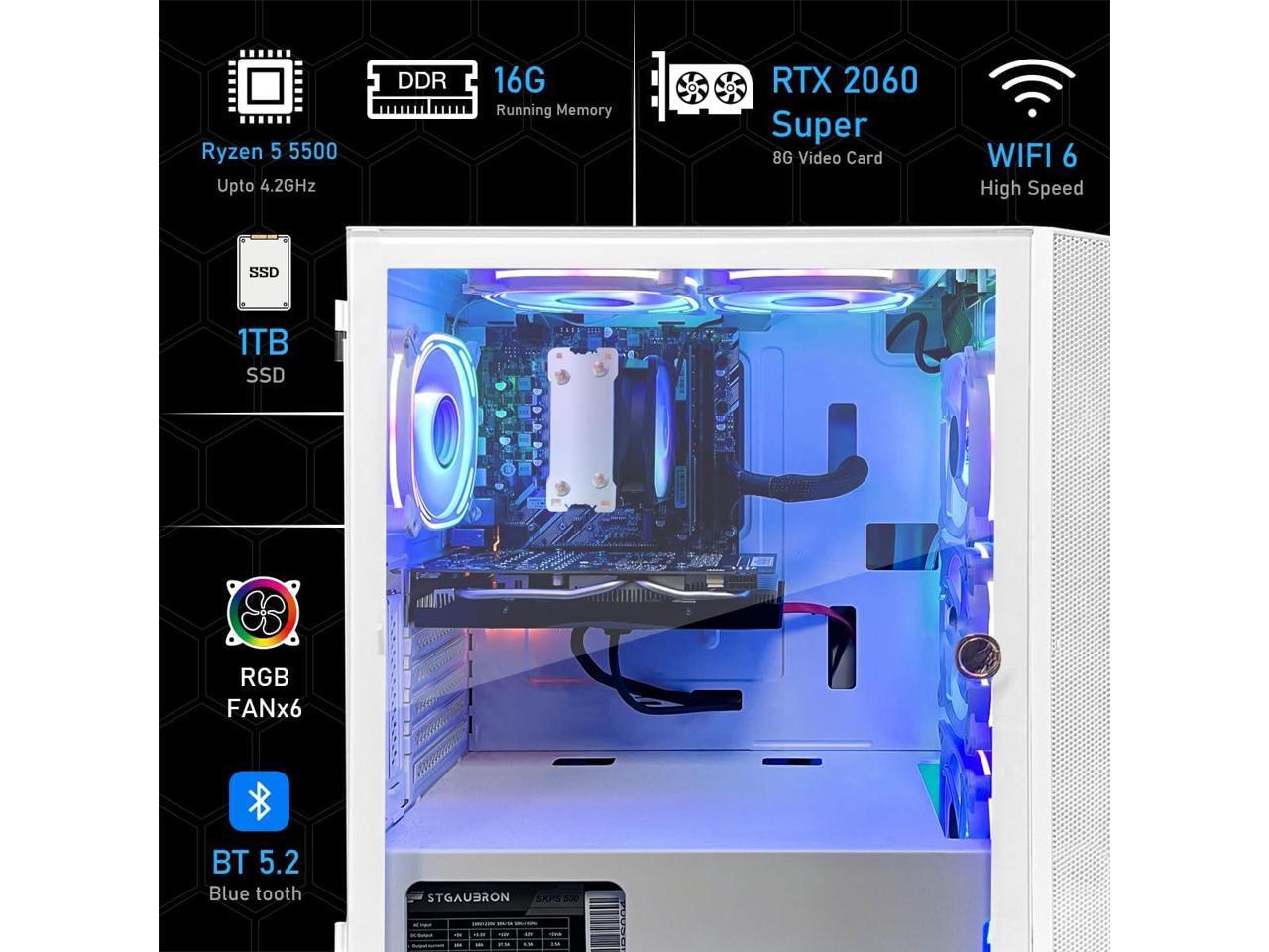 STGAubron Gaming PC Computer Desktop, AMD Ryzen 5 5500 up to 4.2GHz, GeForce RTX 2060 Super 8G,16GB DDR4 RAM, 1TB SSD, WiFi 6 5G Supported & BT 5.2, RGB Fan x6, Windows 11 Home