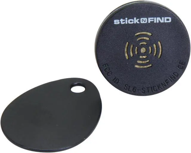 | Features | About the size of a quarter! StickNFind Stickers are only 0.16 Inches (4.1mm) thin. With a compatible size, StickNFind Tracker can be easily stuck on to many items. An Amazing App The Radar Screen displays all of your devices within range. Simply select the Sticker on the radar screen and track it. You can even press a button to make it buzz, flash, or do both. The radar screen can only be used to approximate the distance of the StickNFind from your device but not the exact direction. Once you have located a StickNFind Sticker you would like to find on your Radar Screen, you start walking in a specific direction, and see if you are getting closer or further from the blue dot on your Radar Screen. StickNFind Stickers have a buzzer and light, so that you can find your tagged items in the dark. Virtual Leash This feature allows you to create a virtual leash on a sticker so that if that sticker moves away more than the approximate selected distance from your phone, your phone will alarm you. You can even select a different type of alarm for each individual Sticker. "Find It" Alerts If you are looking for a missing StickNFind Sticker, that your phone cannot find, or is not in range, you can either walk in a specific direction until the StickNFind Sticker appears on your radar screen, or depending on the situation, the Sticker will eventually become in range, and your phone will then alert you. Requirements iOS devices with Bluetooth 4.0 (iPhone 4s, iPhone 5, iPhone 5C, iPhone 5S, new iPad, New Touch, mini iPad) It also works on Android devices from Samsung (Galaxy S3, Galaxy S4, Galaxy S4 Mini, and Note 2. Range & Battery StickNFind Stickers have a Range of about 100 Feet, with a Battery that lasts for over a year. The StickNFind uses a standard watch battery, so it is easy to replace the battery. |