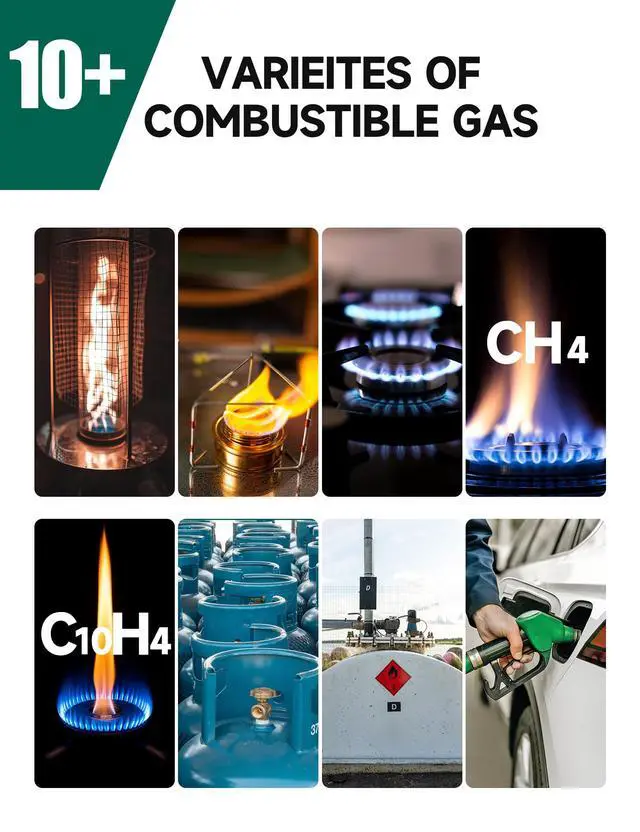 Visual & Audible Alarms for Safety: When combustible gases (such as propane, methane, natural gas, coal gas, gasoline, LPG, LNG) are detected.