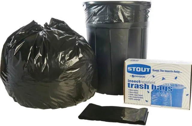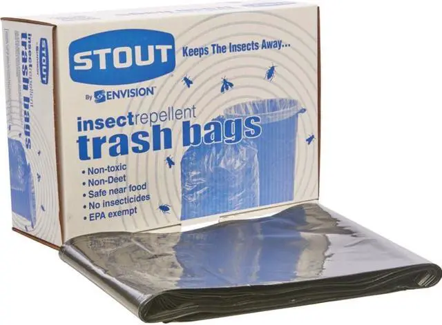 Insect-Repellent Trash Bags, 55 Gal, 2 Mil, 37" X 52", Black, 65/BoxDEET-free (safe for use in food handling establishments).