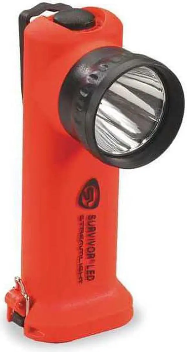 Right-Angle Safety-Rated Flashlight, Battery Chemistry Alkaline, Battery Size AA, Includes Batteries Yes, Number of Batteries 4, Rechargeable No, Beam Pattern Spot, Body Color Orange, Body Material Nylon, Lighting Technology LED, Number of Light Output Modes 4, Maximum Beam Distance 405 m, Maximum Brightness 175 lm, Run Time at Maximum Brightness 4 hr, Weight with Batteries 13.7 oz, Alternate Battery Size Proprietary, Includes Charger No, Beam Color White, Beam Focus Fixed. This item has been restricted from sale in the following state (s): []
