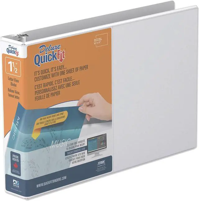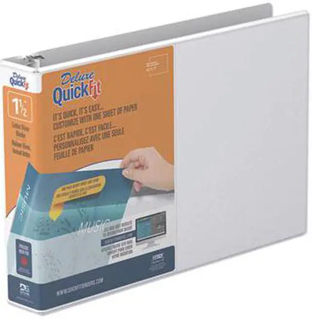 Spreadsheet view binder features the unique QuickFit overlay design that allows you to use a single sheet of paper to create a custom one-piece presentation insert that wraps around the spine to the front cover for easy insertion and quick identification. Constructed from commercial grade polypropylene material for frequent reference and longevity. Landscape format is great for spreadsheets, drawings, and portfolios. Clear overlay is ink and toner resistant. Back-mounted rings allow pages to lie flat. PVC free. Binder Type: Ring; Binder Style: View; Binder Size Capacity: 1.5"; Binder Sheet Capacity: 275.