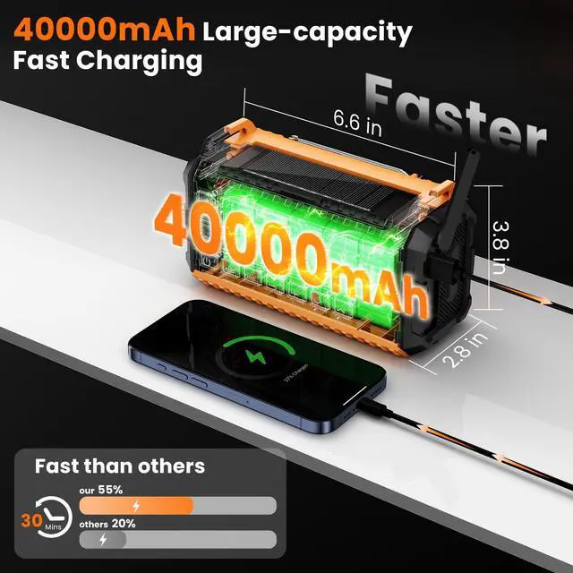 Upgraded 40000mAh Fast-charging Battery Upgraded 40000mAh large-capacity polymer lithium battery, more backup power makes it work longer, supports TYPE-C fast charging, shortens the charging time, and allows the radio to quickly resume working condition