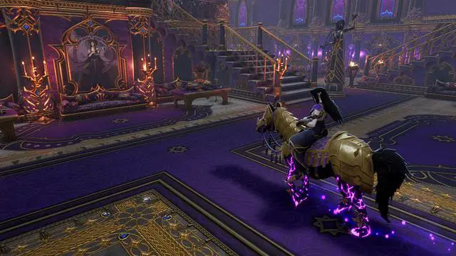 A corrupted steed in glorious gold plating and silken purple drapery, glimmering with supernatural power left in your wake as you ride. The Darkvenom Horse Saddle is a craftable item unlocked as you unlock the Horse Saddle in the game.