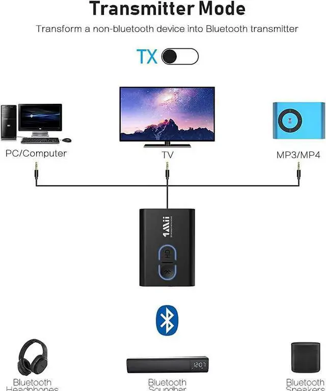 ***** *****2-IN-1 TRANSMITTER & RECEIVER Bluetooth audio transmitter support transmitter and receiver mode. In Transmitter mode, it is very easy to turn a non-Bluetooth TV, PC into Bluetooth transmitter. In receiver mode, Bluetooth 5.0 chip ensures high fidelity Bluetooth audio signal for music streaming to those speakers or home stereo systems that doesnt have the capability. ***** *****ULTRA COMPATIBLE, PL
