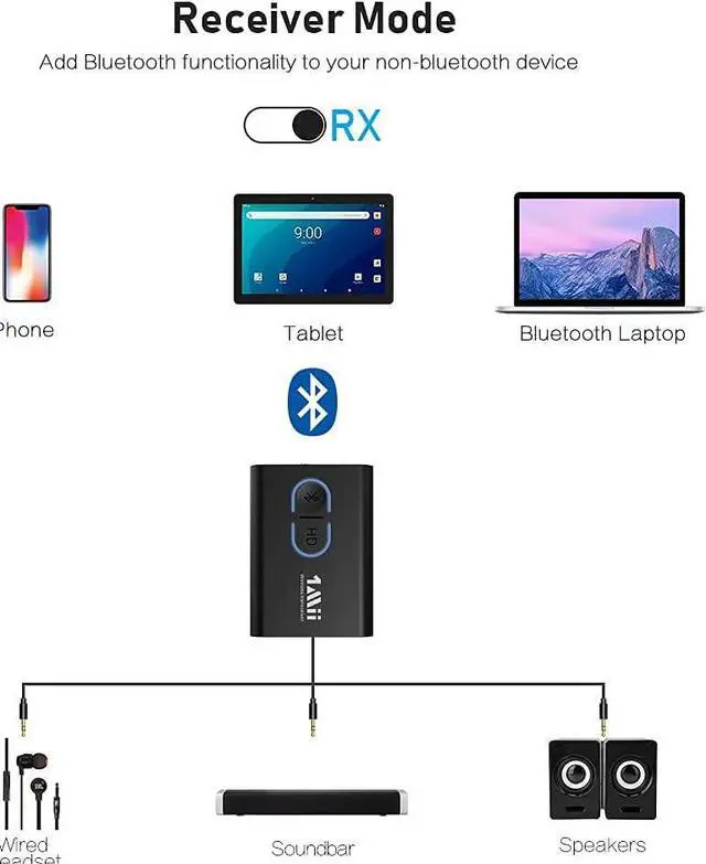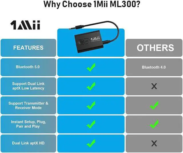 ***** ***** Best Quality Guranteed. ***** *****THE LATEST BLUETOOTH 5.0T he latest Bluetooth 5.0 technology enables your aux Bluetooth adapter backward compatible with Bluetooth 4.2 / 4.0 / 3.0 / 2.0 and it can deliver more stable wireless to your devices. ***** *****DUAL LINK aptX LOW LATENCYWith advanced aptX Low Latency technologies, it can deliver up 80% lower latency. Whether you are playing video games or watching movies, youll experience high quality sound without audio and video to be out of sync issue. Bluetooth headphone adapter support aptX Low Latency in dual link mode as well.
