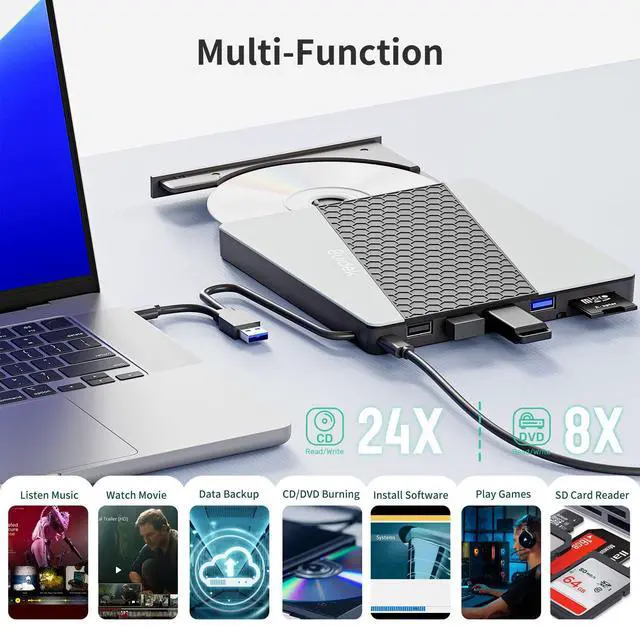 SUIDEK CD DVD external optical drive is the ideal partner for you in your studies, home or work. Accompany you anytime, anywhere.