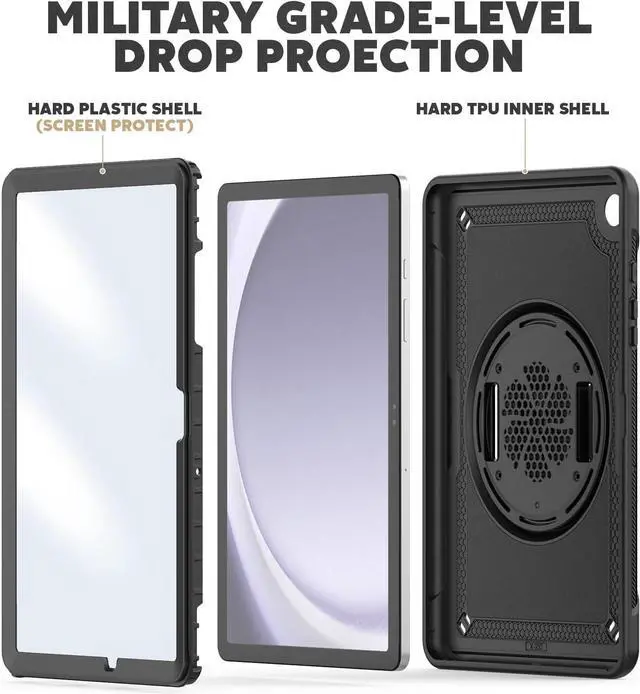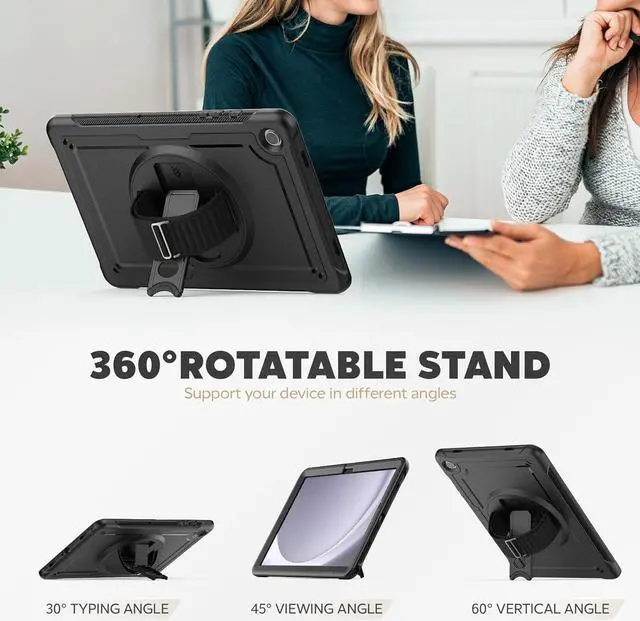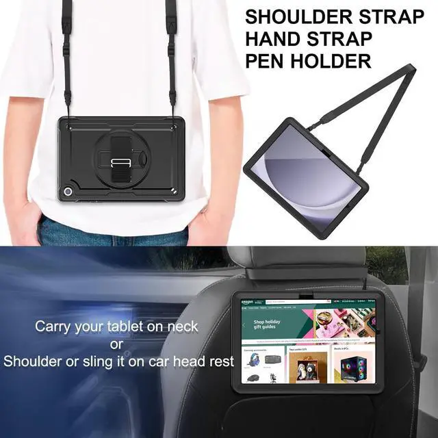 ADJUSTABLE HANDLE/SHOULDER STRAP- The back turntable built-in a hand strap, when you put your hand into the strap, you can firmly grasp the center of gravity of your Galaxy Tab A9 Plus 11 inch tablet. Additional adjustable shoulder strap up to 49 inches, it can be attached to the case for carrying your device.