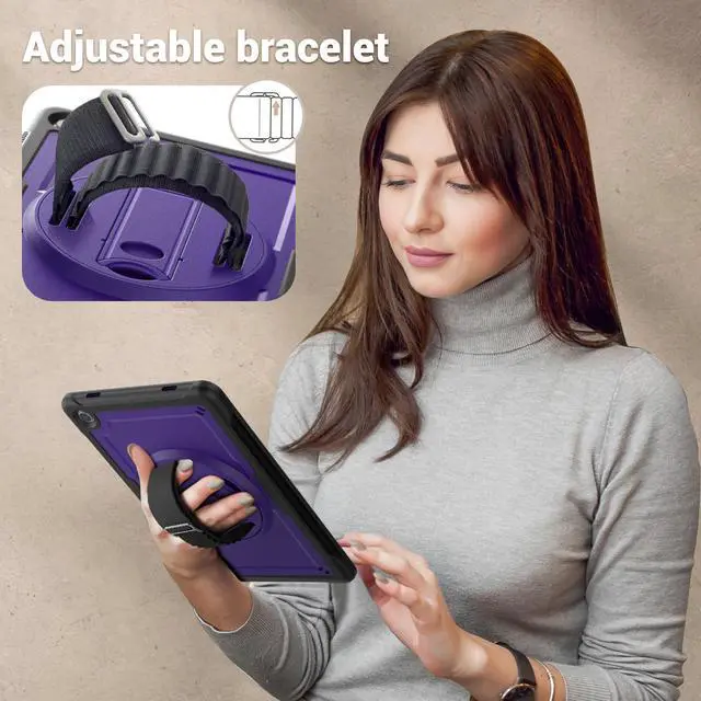 ADJUSTABLE HANDLE/SHOULDER STRAP- The back turntable built-in a hand strap, when you put your hand into the strap, you can firmly grasp the center of gravity of your Galaxy Tab A9 Plus 11 inch tablet. Additional adjustable shoulder strap up to 49 inches, it can be attached to the case for carrying your device.
