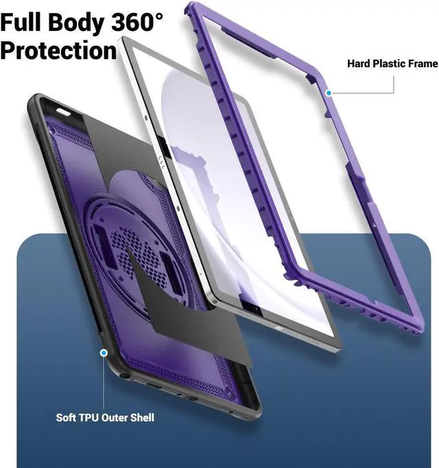 The rugged case is made from polycarbonate and anti-skidding soft TPU, multi-layer protection from the inner shell, outer slipcover, built-in screen protector, keeping our expensive tablets from being damaged by accidentally drops, scratches, shocks.
