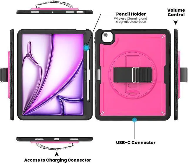 • - Heavy duty protection and Precision Cutouts for Unobstructed Access: Say goodbye to accidental slips and falls with this heavy-duty IPAD Air 11 (M2) 2024 case! Made of PC and TPU, it's built to withstand any impact and keep your device safe and sound. Don't worry about rough handling - this case has got your back! Designed with precise cutouts, our case perfectly fits all buttons and ports, providing easy access to functions without removing the case. Enjoy full functionality with ease.