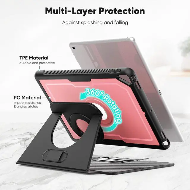 iPad Case 9th Grneration of Function: This ipad 10.2" case 9th grneration 2021 & ipad 8th grneration 2020 & ipad 7th grneration 2019 protective case allows you to adjust the ipad to 360-degree rotation, and has three built-in design deepening grooves, which can be flexibly viewed horizontally and vertically in the protective case.