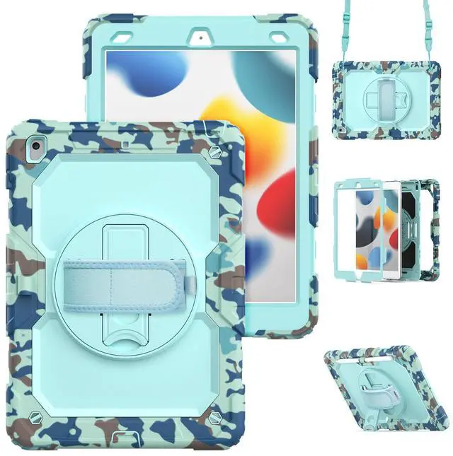 The case allows easy access-to all buttons, controls and ports without having to remove the case for iPad 9th/8th/7th Generation. Shock-prevention keeps away from shocks, port covers of the case keep dust from entering into case for iPad