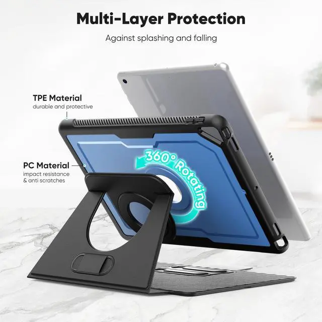 iPad Case 9th Grneration of Function: This ipad 10.2" case 9th grneration 2021 & ipad 8th grneration 2020 & ipad 7th grneration 2019 protective case allows you to adjust the ipad to 360-degree rotation, and has three built-in design deepening grooves, which can be flexibly viewed horizontally and vertically in the protective case.