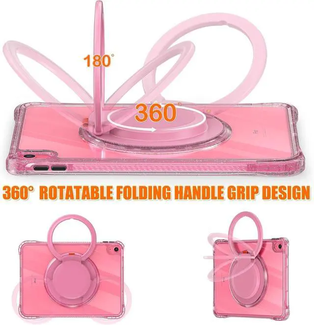 3. Built-in 360 degree rotating kickstand and adjustable handle hand strap provides a more flexible and convenient way to use