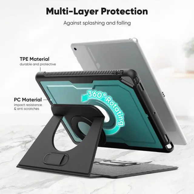 iPad Case 9th Grneration of Function: This ipad 10.2" case 9th grneration 2021 & ipad 8th grneration 2020 & ipad 7th grneration 2019 protective case allows you to adjust the ipad to 360-degree rotation, and has three built-in design deepening grooves, which can be flexibly viewed horizontally and vertically in the protective case.
