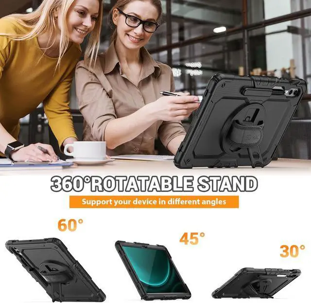 360° rotating stand is foldable and tough to prop your Galaxy Tab S10+ Plus 2024/ S9 FE+ Plus / S9+ Plus 12.4 inch up, allowing you to have the multiple hands-free video-viewing or typing angles, whether you are on a plane, on the couch or even in bed. You will have different horizontal or vertical viewing angles (30°, 45°, 60°) to meet your needs.