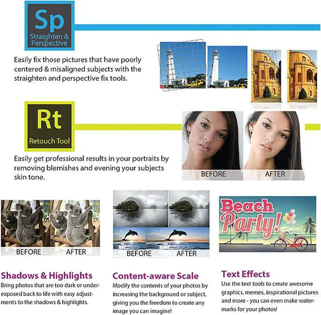 Easily fix those pictures that have poorly centered and misaligned subjects with the straighten and perspective fix tools.