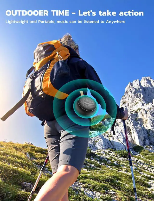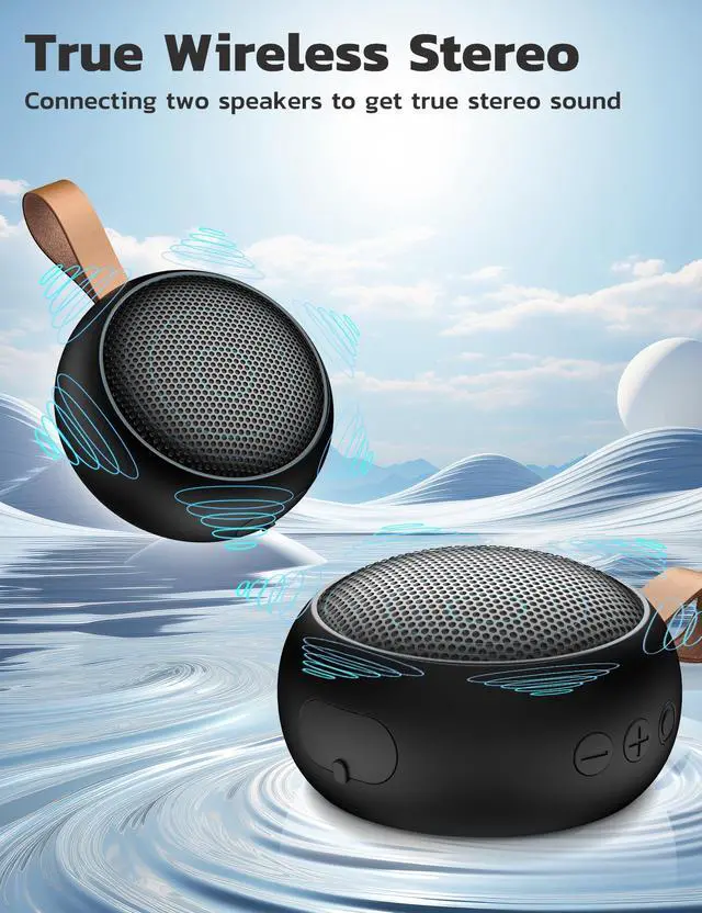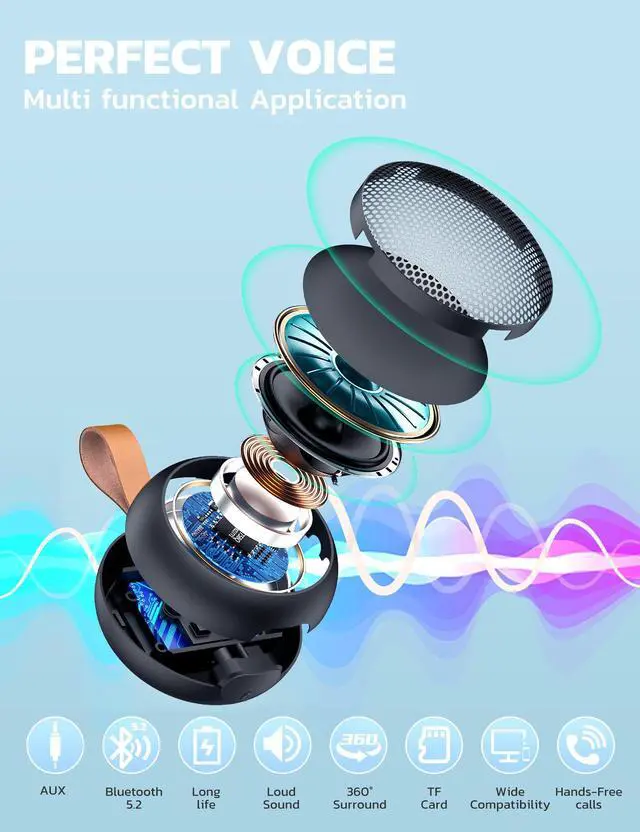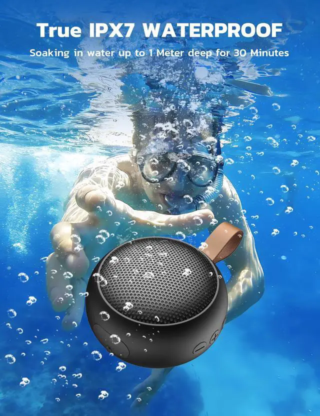 Bluetooth Speaker, IPX7 Waterproof Small Shower Speaker Wireless Bluetooth with Loud Sound, Support TF Care/Built-in Mic- for Carabiner, Beach, Camping, Hiking, Pool, Great Gift