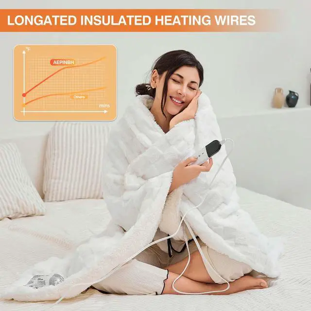 SAFETY FIRST - AEPINBH heated throw blanket is ETL and FCC certified with overheat protection and 1-4 hours timer auto shut-off in case you forget to turn it off. Built-in high-quality heating wire heats up quickly, and the U-shaped coil structure distributes heat evenly and prevents short-circuiting and overheating to avoid safety problems.