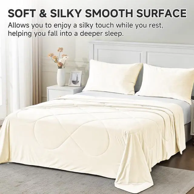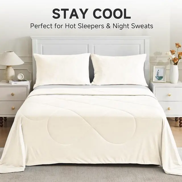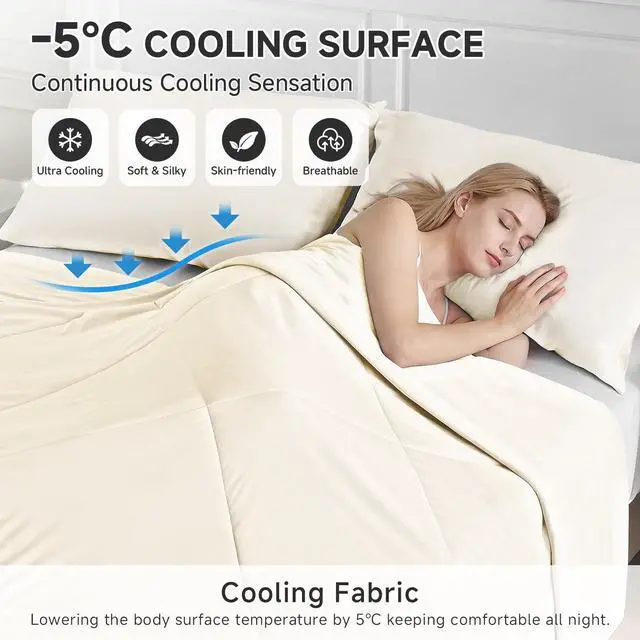 The cooling comforter is made of Japanese cool technology fabric, which can quickly absorb body heat, instantly reduce body temperature by 2-5°C, and keep you cool all night.