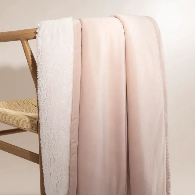 Experience the blend of comfort and style with the Bliss Throw Blanket, a fluffy blanket that adds warmth to any space. Designed for bedding and relaxation, this fuzzy blanket features a reversible design with light pink fleece on one side and soft Fluff on the other for a plush, inviting feel. This bed blanket is a must-have for chilly nights, offering cozy blanket appeal while enhancing any throw blanket for couch styling. Whether draped over a couch blanket or layered as part of your blankets for women collection, its soft blanket texture ensures lasting comfort. Crafted for versatility, this throw blankets for bed piece complements modern and classic spaces alike. Designed to create an inviting retreat, its thick blanket construction provides warmth without added weight. The machine washable fleece blanket is designed for effortless care, making it a staple in any home. Measuring 50-inch x 70-inch or 127cm x 177cm, this warm blanket features a 220 GSM fleece front and 550 GSM Fluff backing, delivering both style and comfort through every season.
