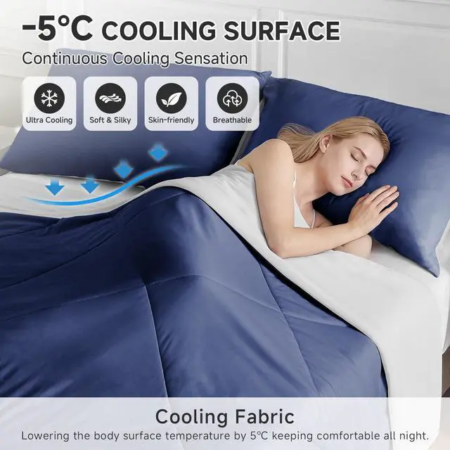 • [Double Sided Cold Effect]Both sides of the cooling comforter are made of dense cooling fiber fabric, after high-strength weaving process, the cold and hot blanket has a higher specific heat capacity and can dissipate heat efficiently and quickly. Our blanket keeps you cool for long periods of time instead of moments. It keeps you from sweating all night and keeps dry and non-sticky. Feel delicate, soft, silky and no static blanket for you to provide the most comfortable sleeping environment