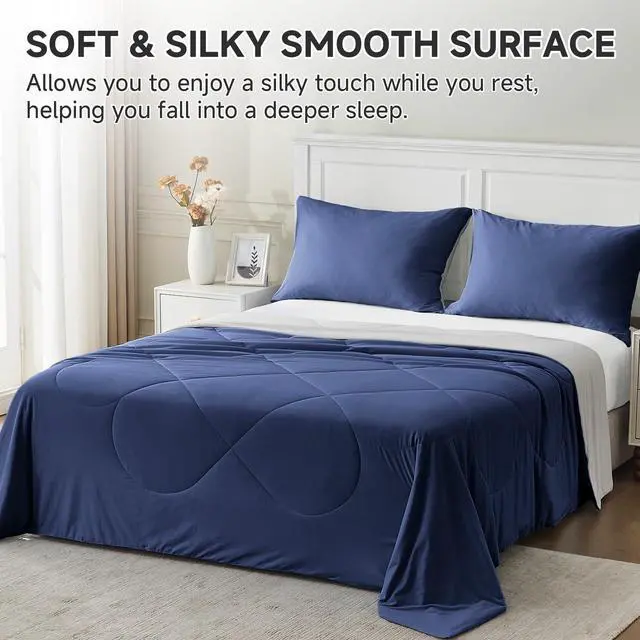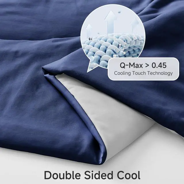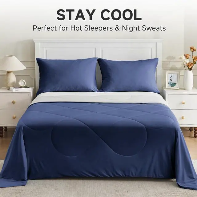 HOMFINE Cooling Comforter for Hot Sleepers - Both Sides Q-Max>0.45 Arc-Chill Cooling Fiber for All-Season, Breathable Soft Keep Cool Summer Blanket for Bed Couch Sofa, Dark Blue, Twin