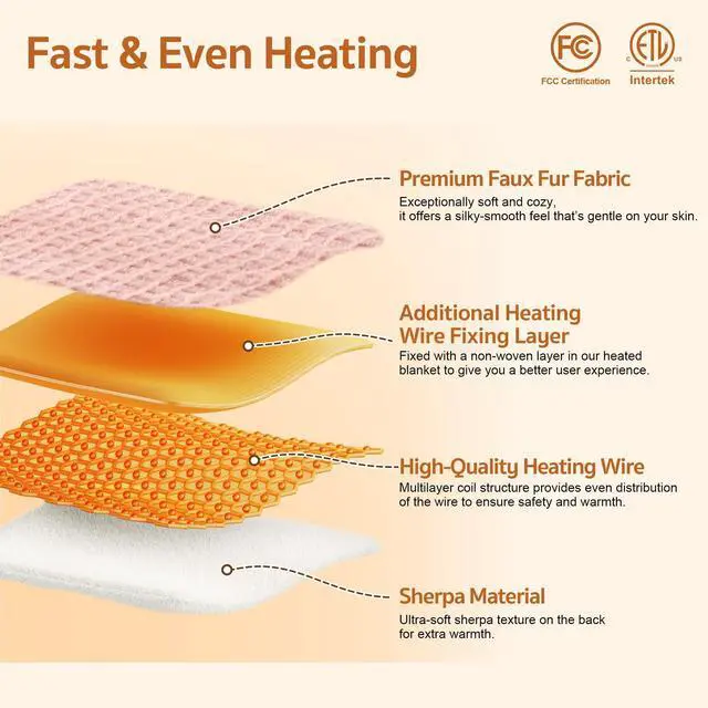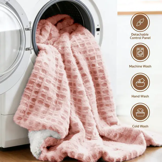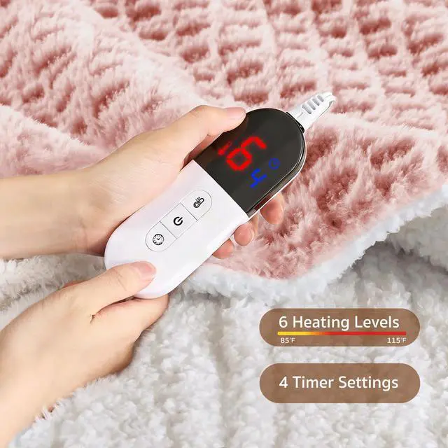 Safety First ETL Certified & Overheat Protection: Built with NTC overheating protection and ETL certification, our blanket ensures worry-free use. Featuring 6 heat settings (86°F113°F) and 4 auto-off timers (14h), it provides the warmth you need with the protection you deserve. Relax with peace of mind, even while sleeping. Plush Comfort Faux Fur & Sherpa: Crafted with 350GSM waffle-patterned faux fur and a 200GSM sherpa lining, this blanket wraps you in irresistible softness. The hidden inner nonwoven layer adds structure and breathability without sacrificing warmth. Digital Display & Smart Temperature Control: The intuitive controller features a clear digital display, letting you adjust heat and timer settings with ease. Whether you prefer a gentle warmth or a higher level of heat, personalize your comfort anytime. Elegant Waffle Design Gift-Ready Style & Texture: More than just cozy, this blanket features a sophisticated waffle weave on the surface, adding rich texture and a designer look that elevates any space. Whether draped over a sofa or folded at the end of a bed, its both a stylish accent and a comforting companionmaking it an ideal gift for birthdays, holidays, or heartfelt moments. Easy to Clean & Reliable Support: Remove the controller and machine wash on cold with gentle cyclesimple and stress-free. Backed by 24/7 customer service, were always here to help. Please refer to the care instructions to maintain longevity and safe use.