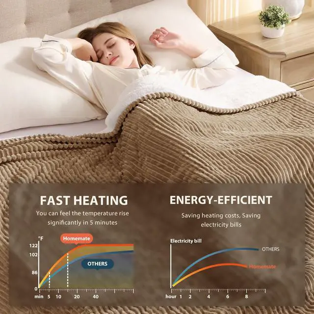 Q: What are the features of Homemate heated blanket compared to other heated blankets?