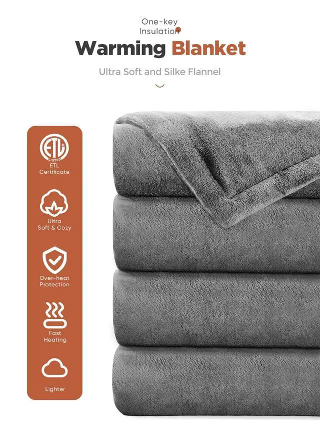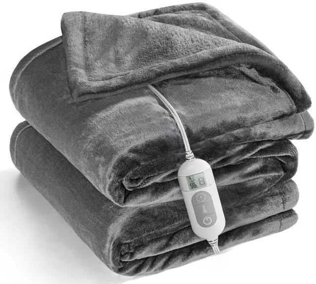 Transform your relaxation experience with this luxurious heated throw blanket in sophisticated gray. Crafted from soft, cozy flannel material, this full-body warming blanket offers exceptional comfort with its 8 versatile heat settings to match your perfect temperature. The smart timer function allows you to set automatic shutoff anywhere from 1 to 9 hours, ensuring peace of mind while you unwind. This thoughtfully designed throw combines practicality with comfort - it's completely machine washable for easy care and maintenance. The digital controller makes it simple to adjust settings, while the plush flannel fabric provides a gentle, soothing touch against your skin. Whether you're reading a book in your favorite chair or watching movies on the couch, this heated throw blanket delivers consistent, comforting warmth throughout your relaxation time. It's the perfect companion for chilly evenings or anyone seeking additional warmth and comfort in their home.