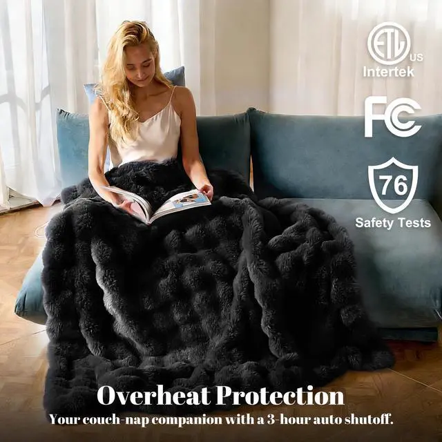 Faux Fur Rabbit Heated Blanket