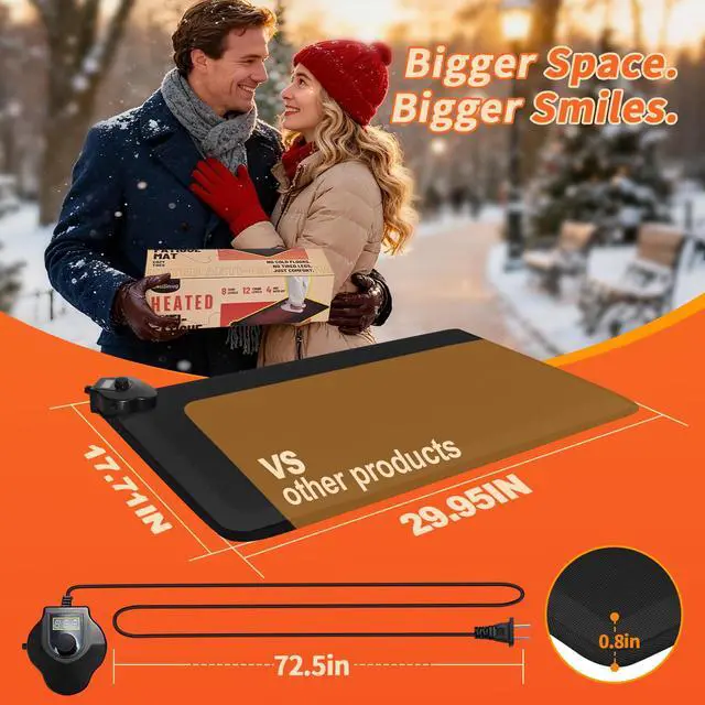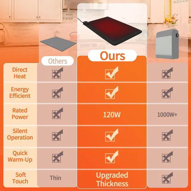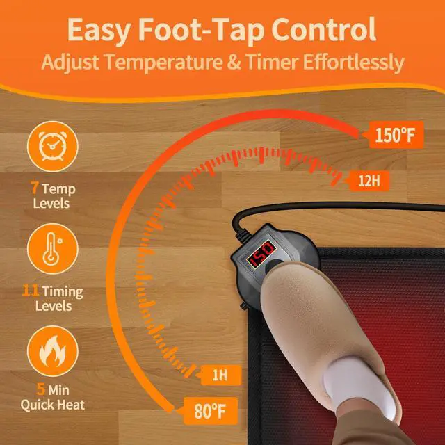 Energy-Efficient Heating - This heated rug uses just 120W of power, a fraction of the 1,000W+ typical space heaters. Enjoy targeted warmth with our under desk heater for your cold feet exactly where you need it most during winter.