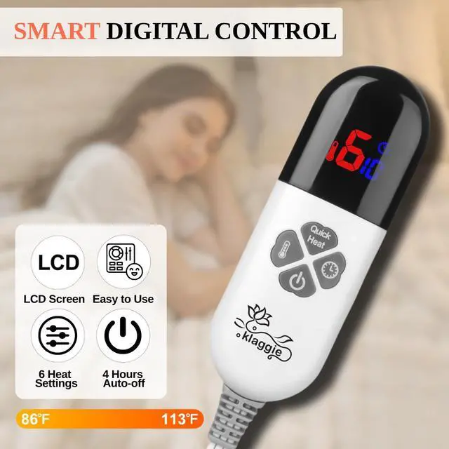 • 6 HEAT SETTINGS: The heated blanket is designed with insulated wires. The wires are safely kept in place between the fabric layers of the blanket to heat up. There are 6 heating levels, ranging from 86-113. You can choose the heating level as your wish