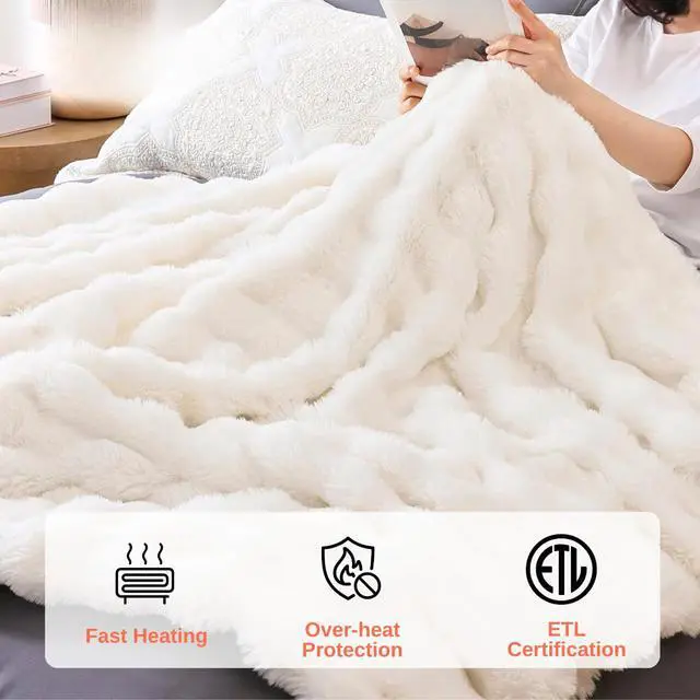 • UNMATCHED COMFORT & WARMTH: Crafted with 460 GSM fluffy faux rabbit fur, this heated blanket offers an ultra-soft, luxurious feel, providing soothing warmth and cozy comfort for ultimate relaxation. Perfect for lounging on the couch or drifting into a restful sleep. It is machine washable, easy to use and care