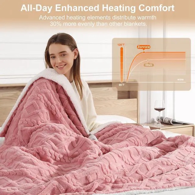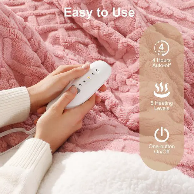 Introducing our 50''x60'' Heated Blanket Electric Throw, designed to provide luxurious warmth and relaxation during chilly days and cold winter nights. Stay cozy and warm all season long with our premium heated electric throw blanket, whether you're lounging on the couch, reading in bed, working at your desk, or enjoying a restful night's sleep. Wrap yourself in unparalleled warmth and comfort with our soft blanketswhere luxury materials, advanced safety, and thoughtful design come together to redefine cozy living. Made with ultra-soft flannel and thick sherpa, this electric blanket throw offers a plush, fluffy feel while providing fast, even heat distribution for maximum comfort. Powered by optimized heating technology, it reaches your desired temperature in just 10 minutes, with extended heating wires covering over 90% of the blanketeliminating cold spots for consistent coziness. Customize your warmth effortlessly with 5 adjustable heating levels, ranging from a gentle glow for mild days to a toasty high setting for the coldest nights. Safety is our top priority: this heating blanket is certified by both ETL and FCC, guaranteeing high-quality performance you can trust. The built-in 4-hour auto-off function provides peace of mind, automatically turning off the blanket to prevent overheating and ensure safetywhether you're dozing off or forget to switch it off. Beyond warmth, this electric blanket is energy-efficient too. Compared to similar heating products, it operates with lower energy consumption, helping reduce winter heating costs. Its high-efficiency design maintains sustained warmth without unnecessary electricity waste, balancing comfort and cost-savings seamlessly. An excellent gift for women, men, moms, dads, and seniors, this heated throw blanket combines style, functionality, and comfortmaking it ideal for birthdays, holidays, or any special occasion. Elevate every cozy moment with a blanket that cares as much about your comfort as you do.