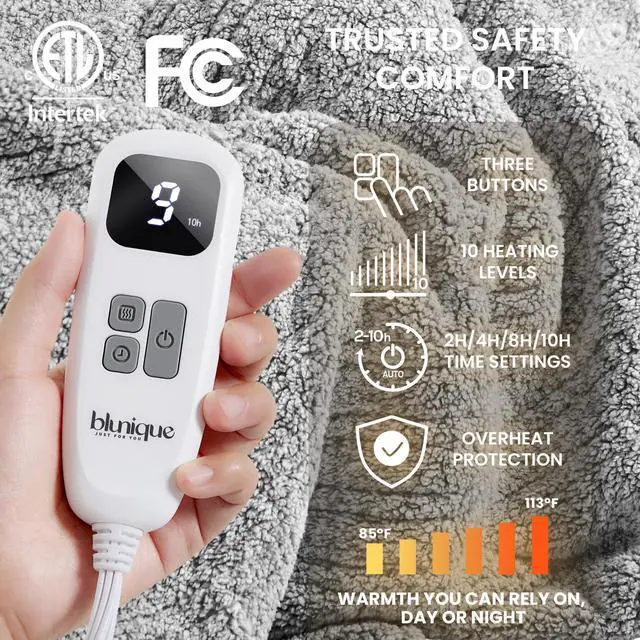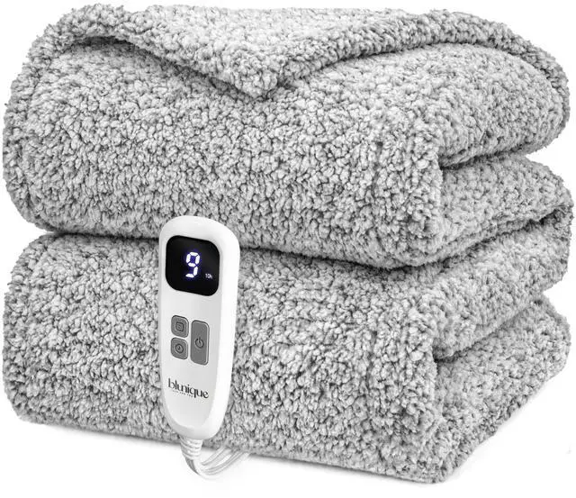 Stay cozy with blunique Electric Throw Blanket, made from luxurious double-sided Sherpa for maximum comfort and warmth. Available in Throw, Twin, Queen, King, and Full Sizes, and a variety of colors including Grey, Light Grey, Light Sage, Camel, Light Camel, Sage, and Purple, its perfect for any room in your home. Choose from three stylish designs to match your decor: