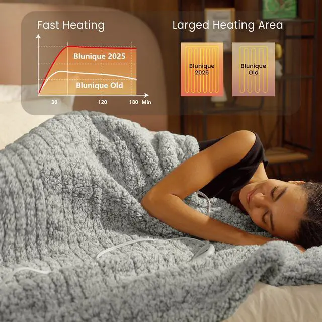 Customize your comfort with 6 heat settings (85°F to 113°F). Heats up quickly, with a 2-4 hour auto-off timer for safety and energy efficiency.