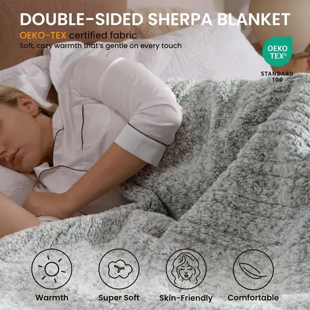 Electric Blanket Soft, Cozy & Warm with Double-Sided Sherpa Ideal for Couch, Sofa, Bed, and Office