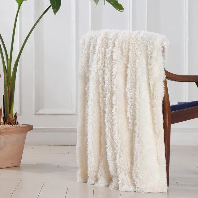 Solid Reversible Long Hair Shaggy Blanket