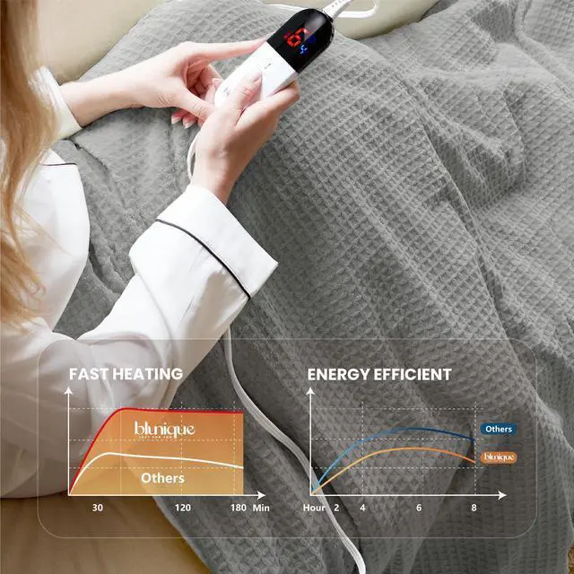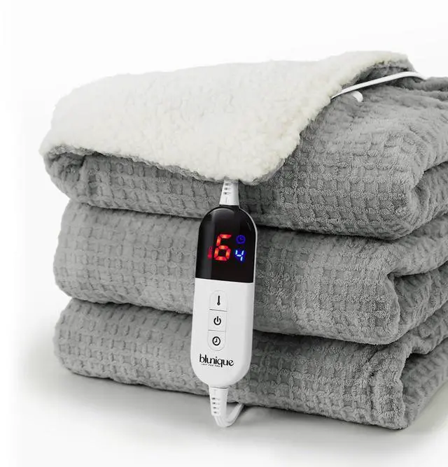 blunique waffle heated blanket features overheat protection and auto shut-off. If the controller isn’t fully connected or the blanket isn’t laid flat, it may turn off. Reconnect securely, lay flat and try again. Contact support if needed.