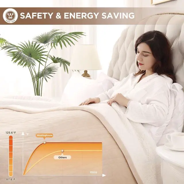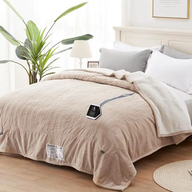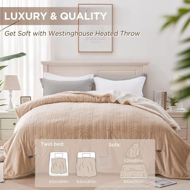 Heated Blanket, Electric Throw Blanket with 10 Heating Levels, 12 Hours Auto Off, Overheat Protection, Machine Washable, Flannel to Sherpa (Twin, 62x84 Inches, Beige&Ivory)