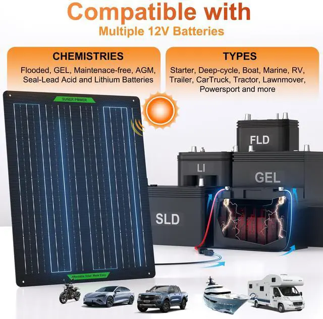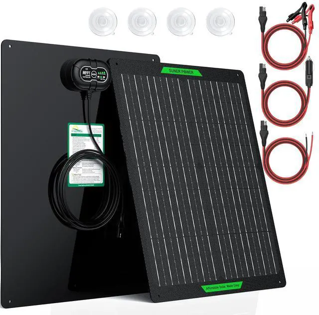 | Included Components | 1 x 30W Solar Panel Battery Charger, 1 x SAE-Alligator Clip Cable, 1 x SAE-Bare End Cable, 1 x SAE-Cigarette Ligher Cable |