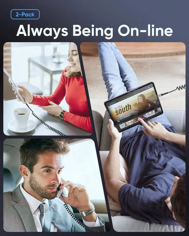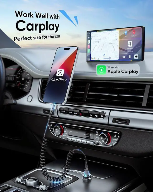 Coiled Cable Design for CarThis coiled iPhone lightning charger cable is a tangle-free, compact, and portable solution for keeping your car console neat and organized.