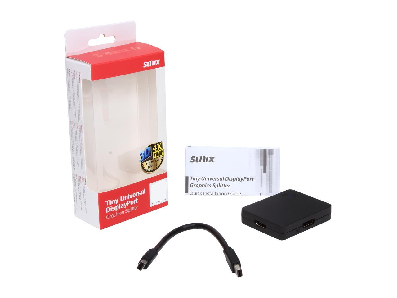 SUNIX DPU3000-D2 3 Ports DisplayPort Graphics Splitter Adapter with miniDP to miniDP Cable