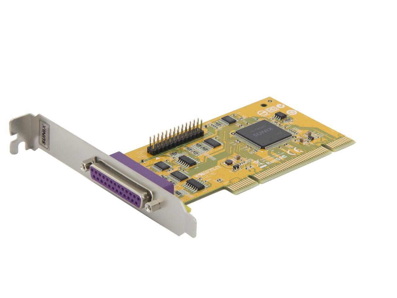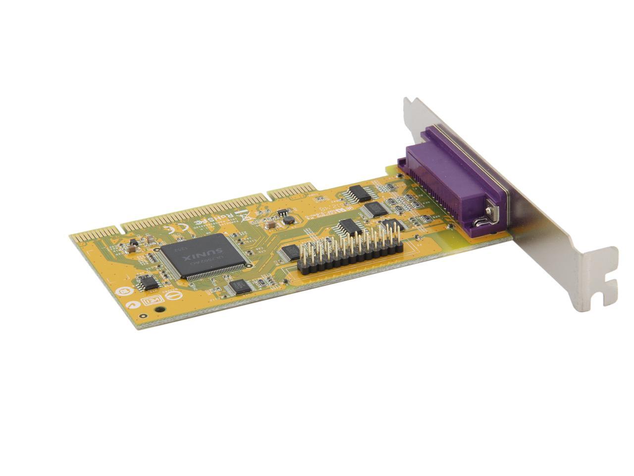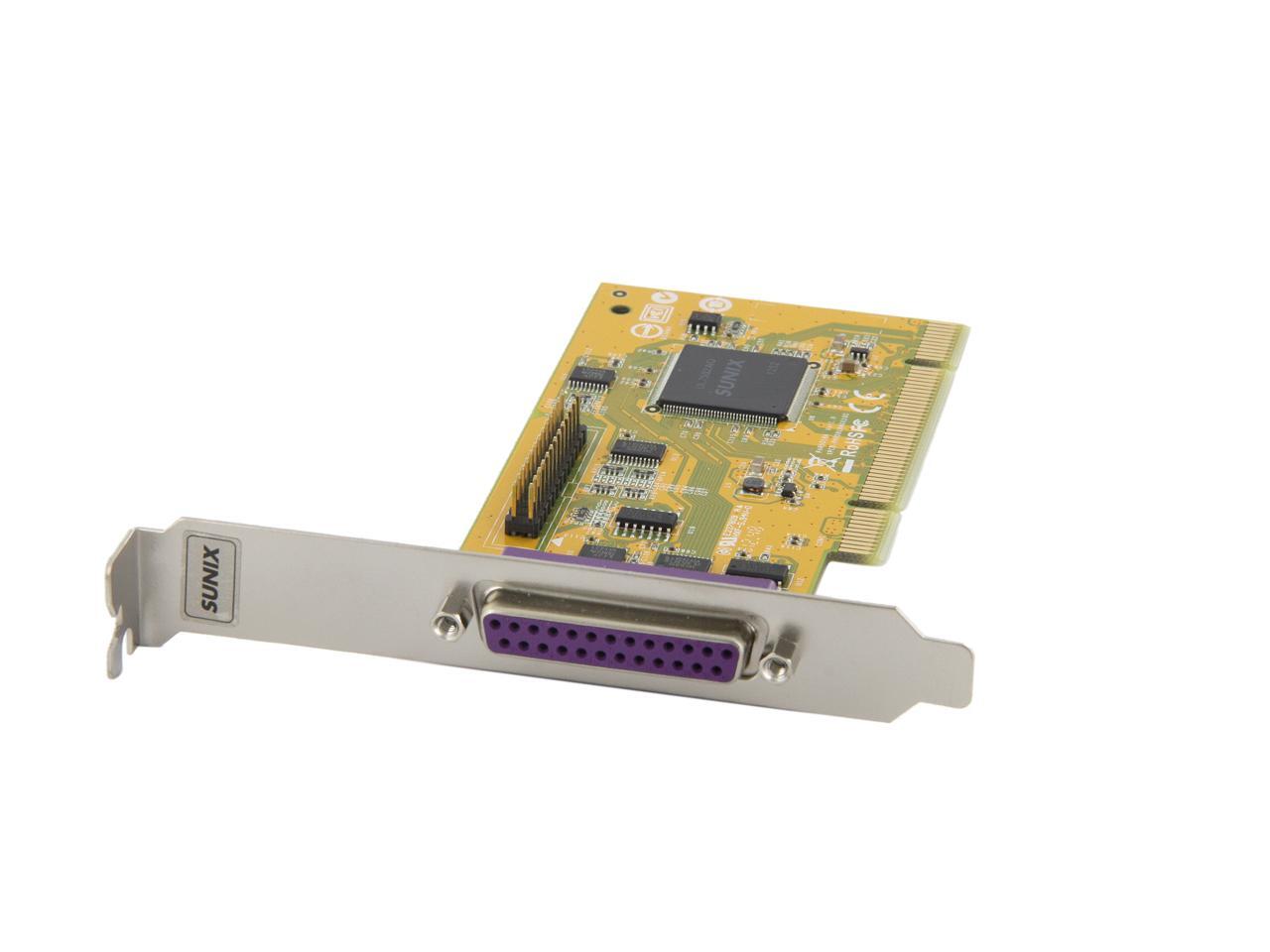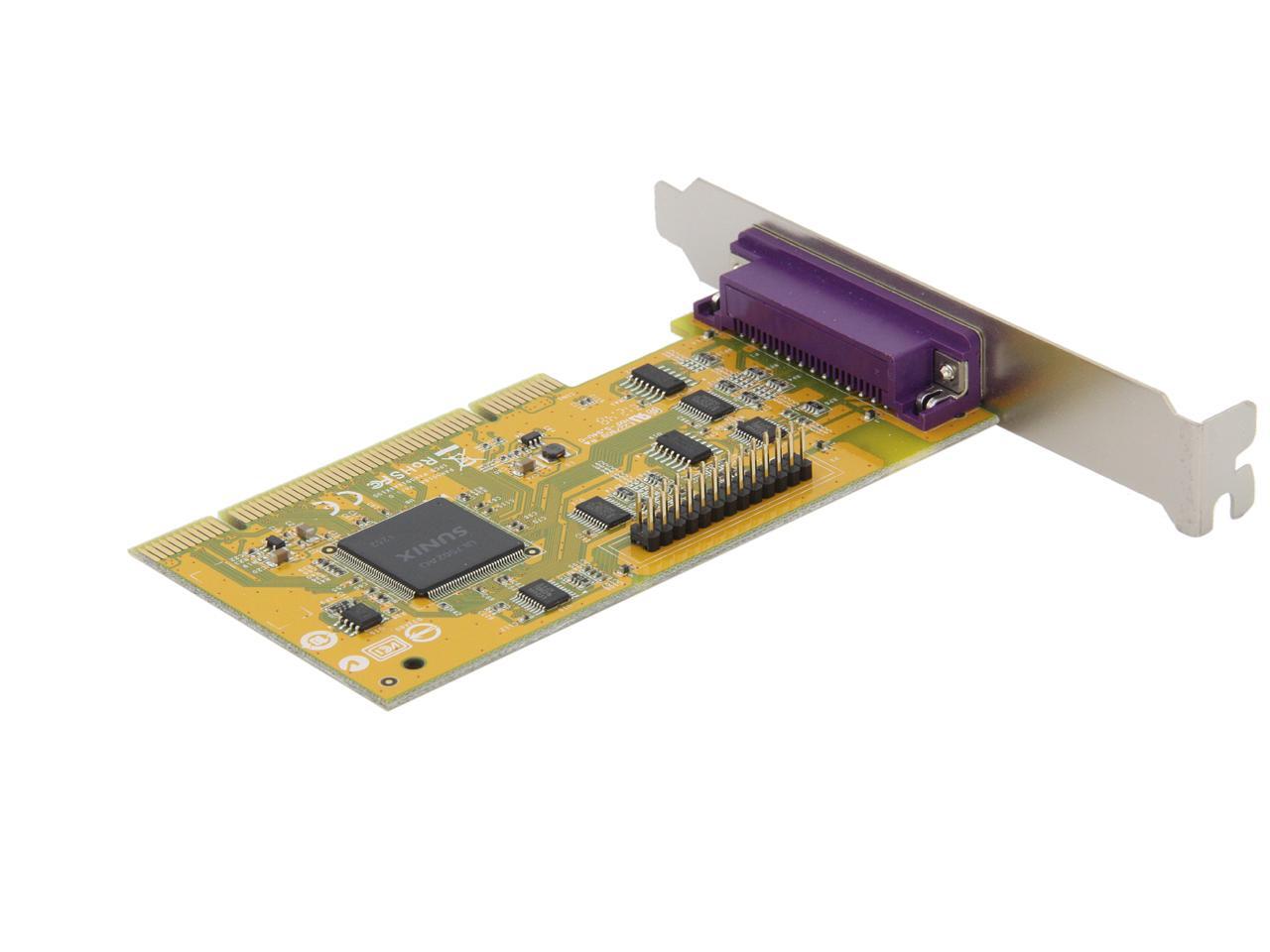 | Features | High reliability SUNIX UL7502AQ Parallel controller on-board. Expands two IEEE1284 Parallel port on system. Compliance with PCI 33MHz Ver. 3.0/2.3/2.2./2.1 specification. Support IEEE 1284-1994 parallel port standard -ECP (Enhance Capacity Port) / EPP (Enhance Parallel Port) -SPP (Standard Parallel Port) / BPP (Bi-direction Parallel Port). Auto-switching between ECP/EPP/SPP/BPP modes without configuration. Plug-n-Play, I/O address and IRQ assigned by system. Certified by CE, FCC, RoHS, and Microsoft WHQL approval. Support Microsoft Windows, Linux, and DOS. |