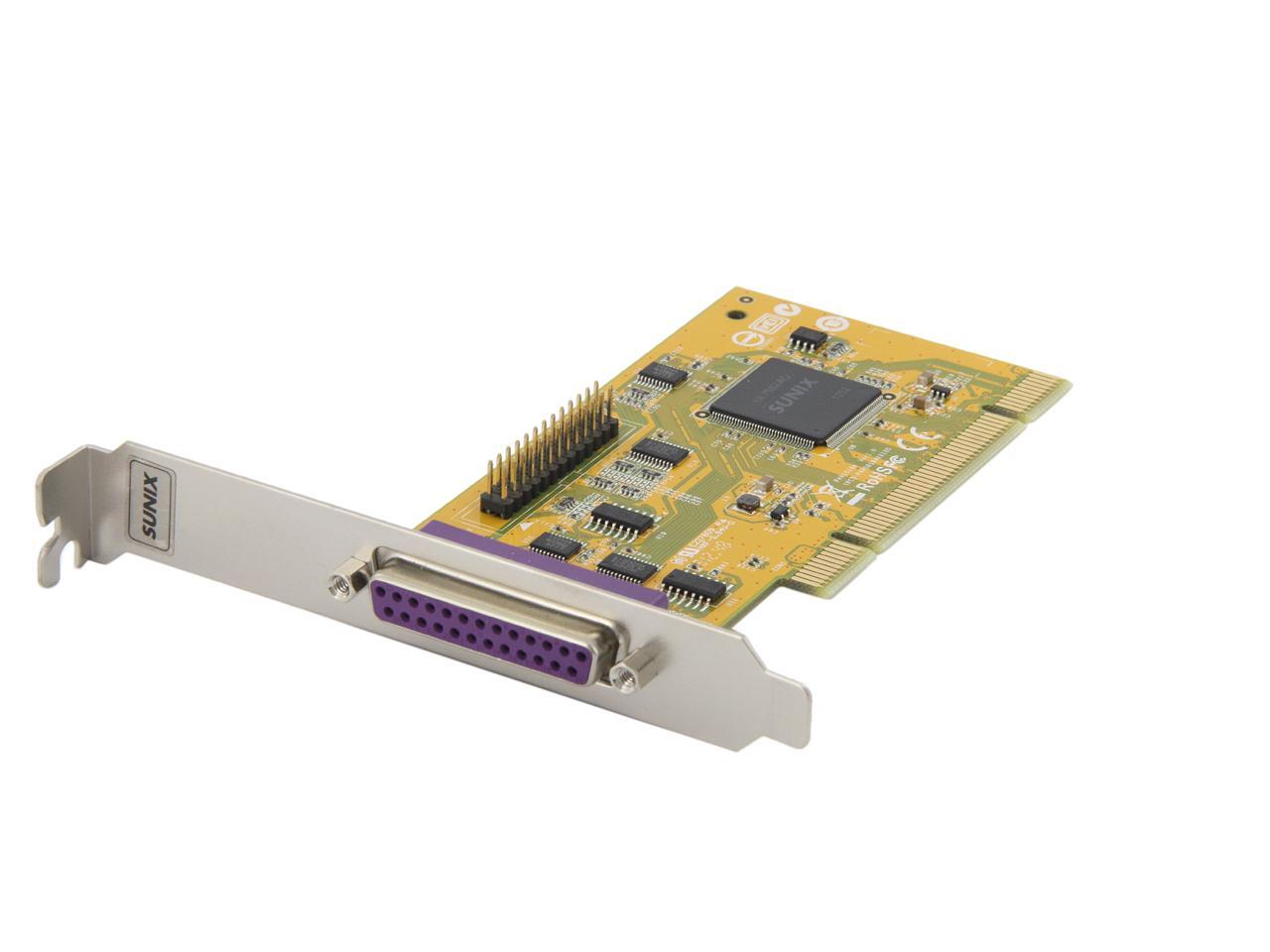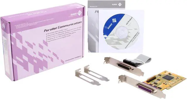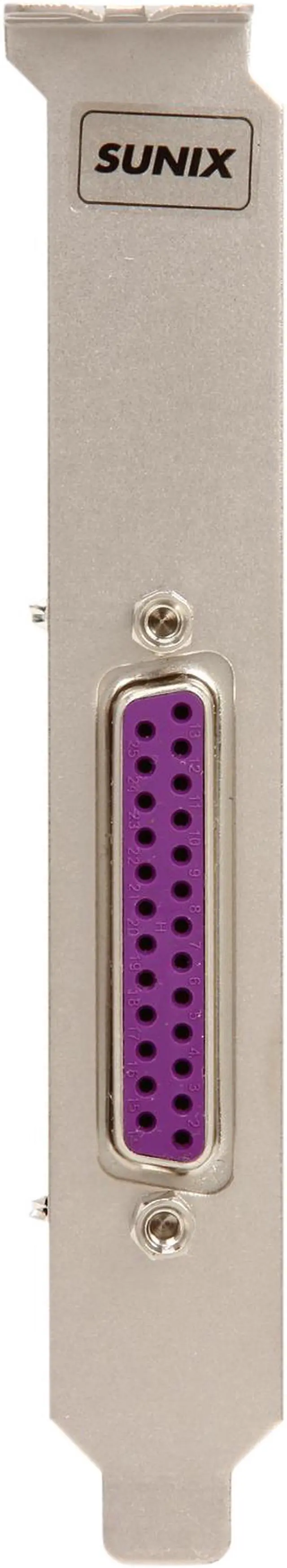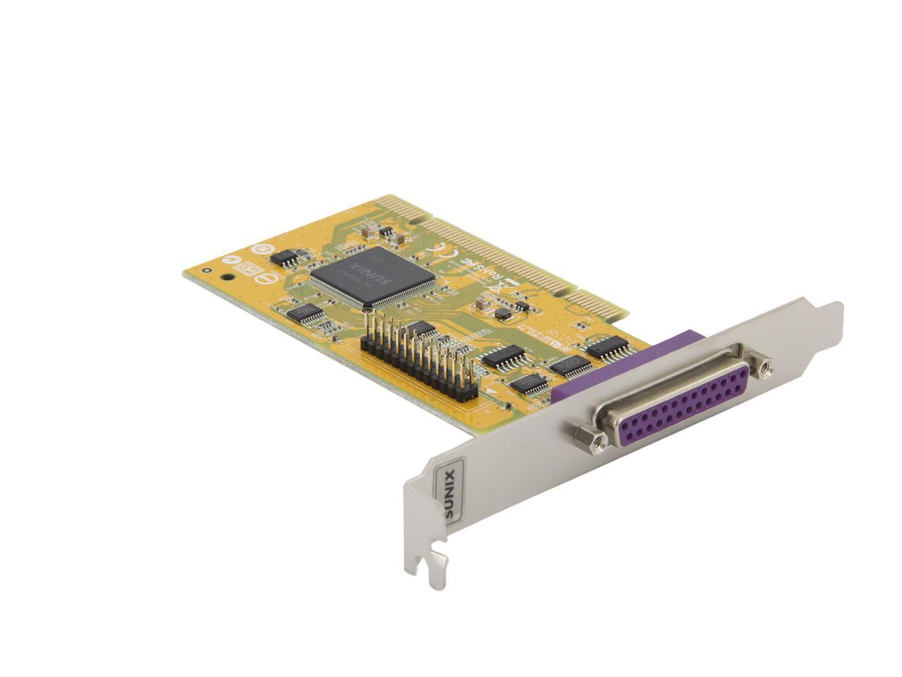 | Features | High reliability SUNIX UL7502AQ Parallel controller on-board. Expands two IEEE1284 Parallel port on system. Compliance with PCI 33MHz Ver. 3.0/2.3/2.2./2.1 specification. Support IEEE 1284-1994 parallel port standard -ECP (Enhance Capacity Port) / EPP (Enhance Parallel Port) -SPP (Standard Parallel Port) / BPP (Bi-direction Parallel Port). Auto-switching between ECP/EPP/SPP/BPP modes without configuration. Plug-n-Play, I/O address and IRQ assigned by system. Certified by CE, FCC, RoHS, and Microsoft WHQL approval. Support Microsoft Windows, Linux, and DOS. |