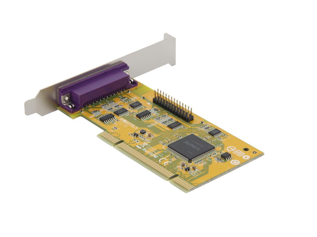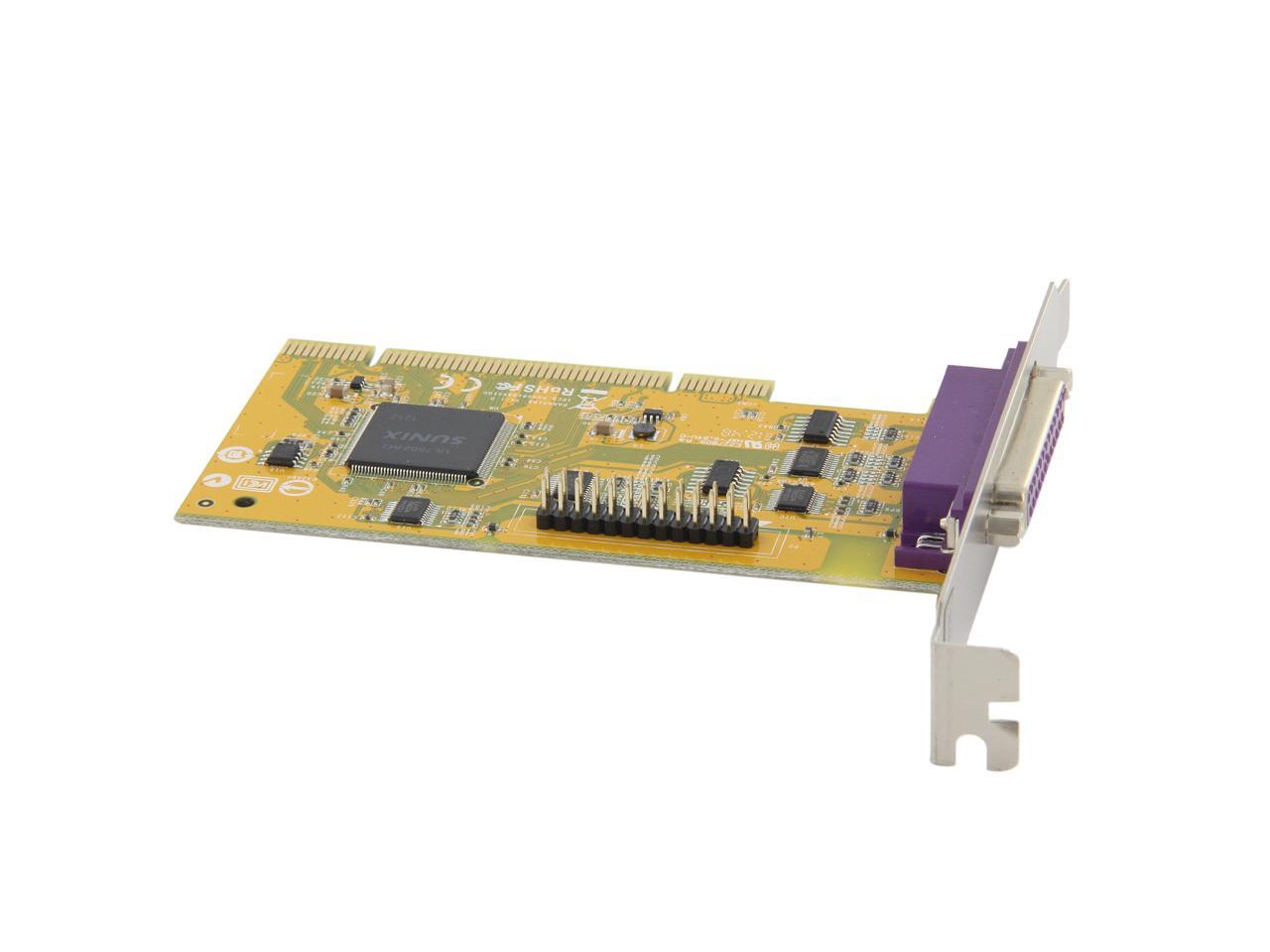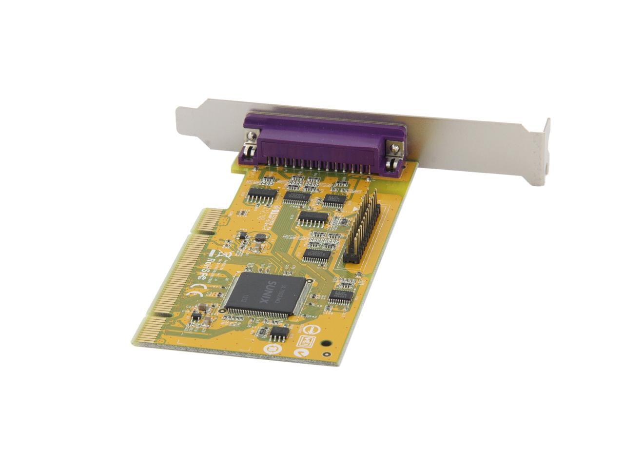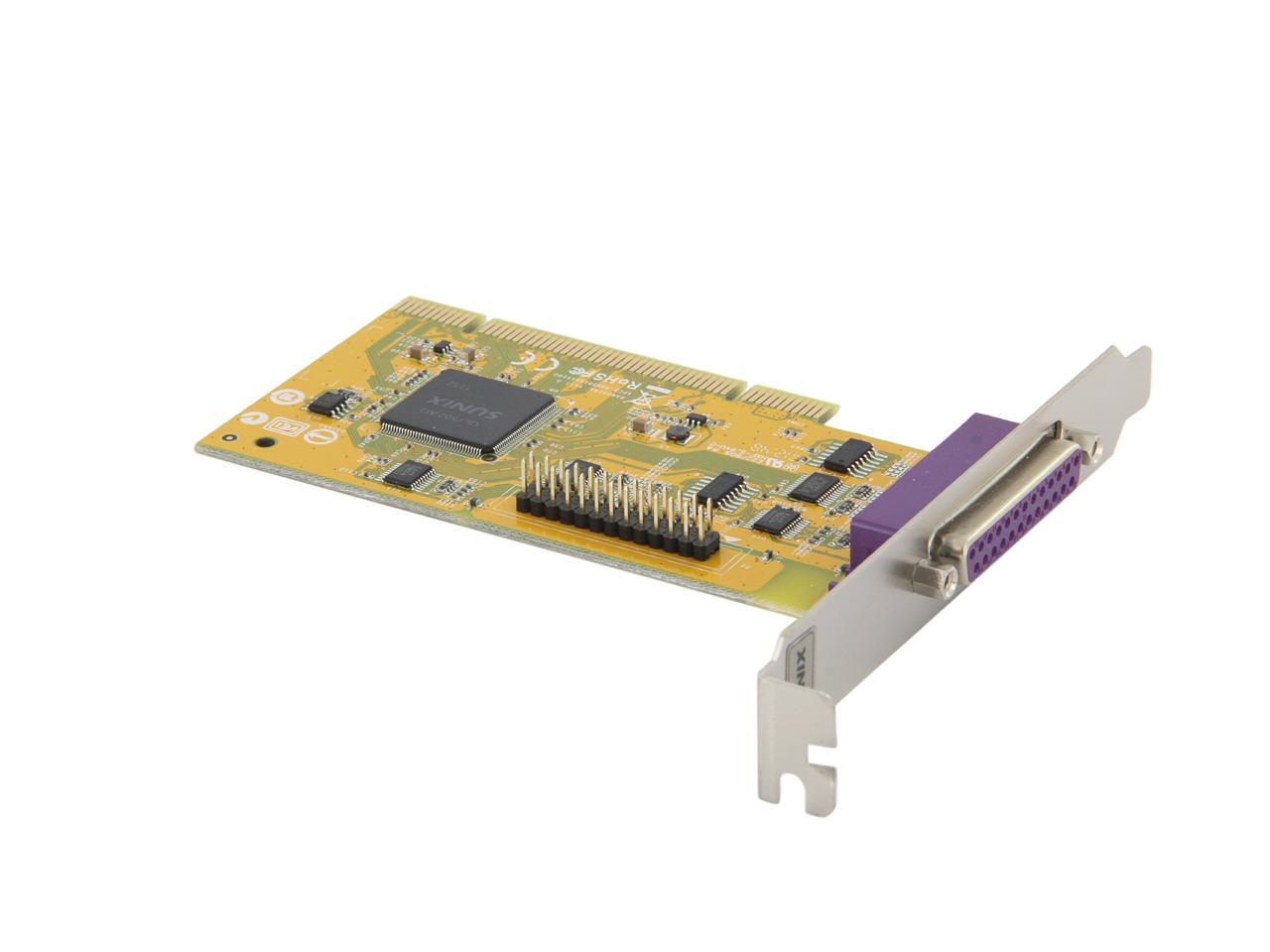 | Features | High reliability SUNIX UL7502AQ Parallel controller on-board. Expands two IEEE1284 Parallel port on system. Compliance with PCI 33MHz Ver. 3.0/2.3/2.2./2.1 specification. Support IEEE 1284-1994 parallel port standard -ECP (Enhance Capacity Port) / EPP (Enhance Parallel Port) -SPP (Standard Parallel Port) / BPP (Bi-direction Parallel Port). Auto-switching between ECP/EPP/SPP/BPP modes without configuration. Plug-n-Play, I/O address and IRQ assigned by system. Certified by CE, FCC, RoHS, and Microsoft WHQL approval. Support Microsoft Windows, Linux, and DOS. |