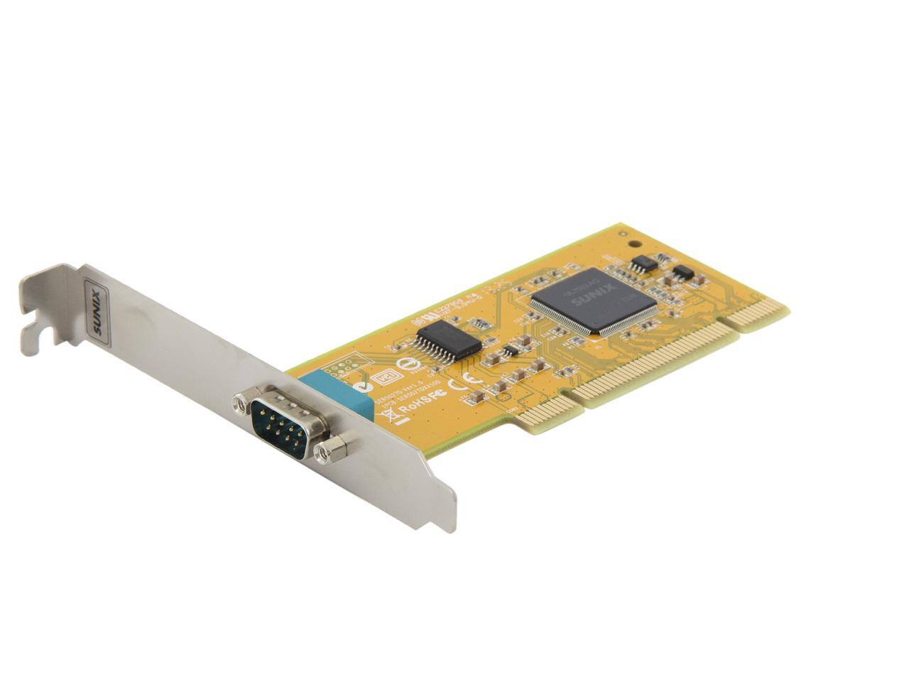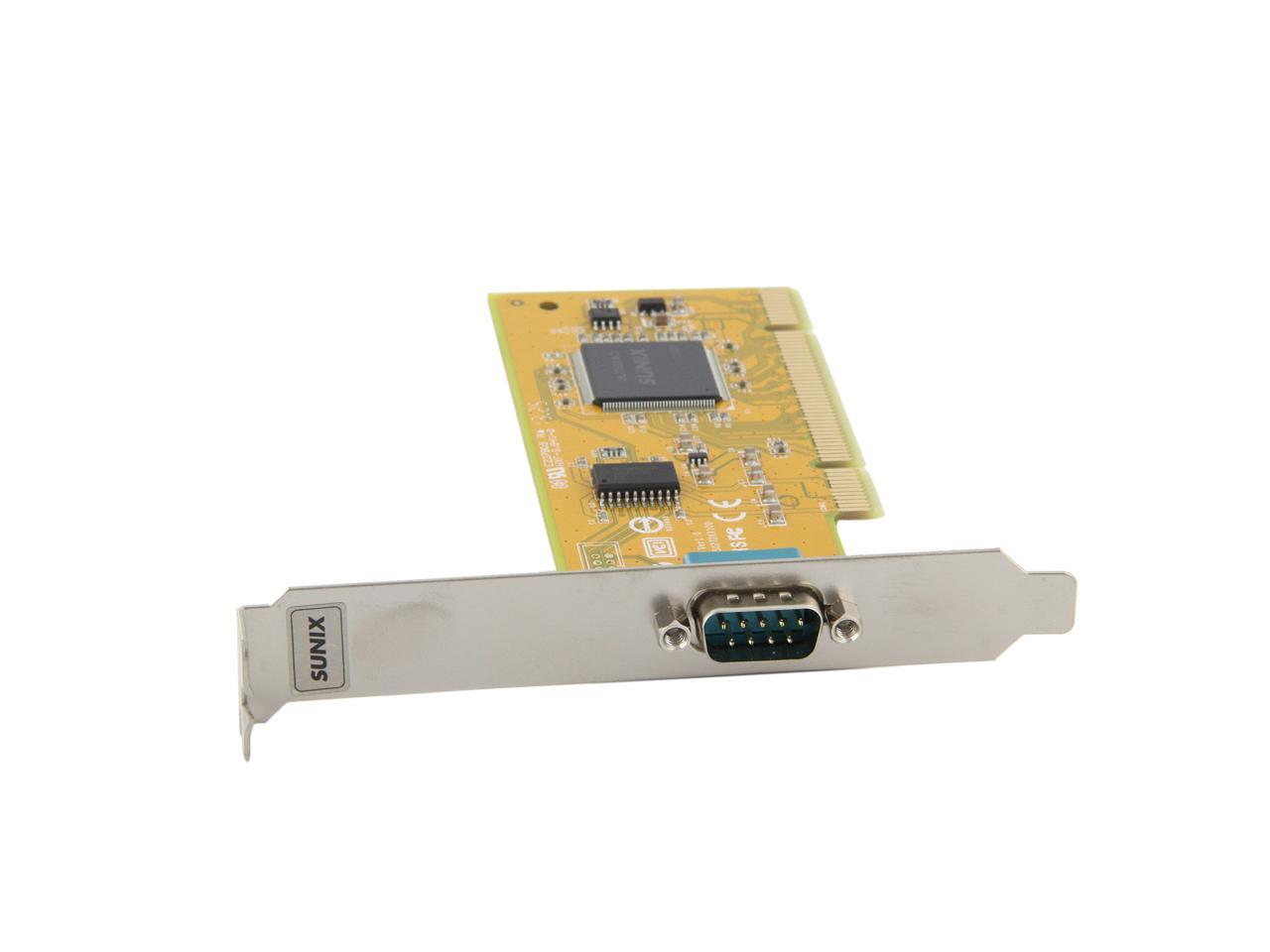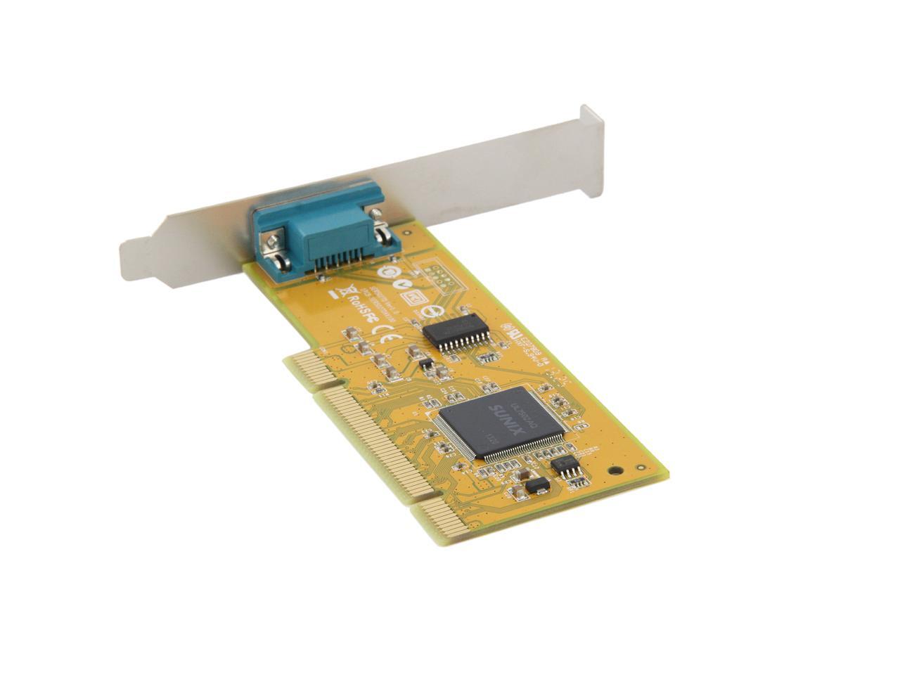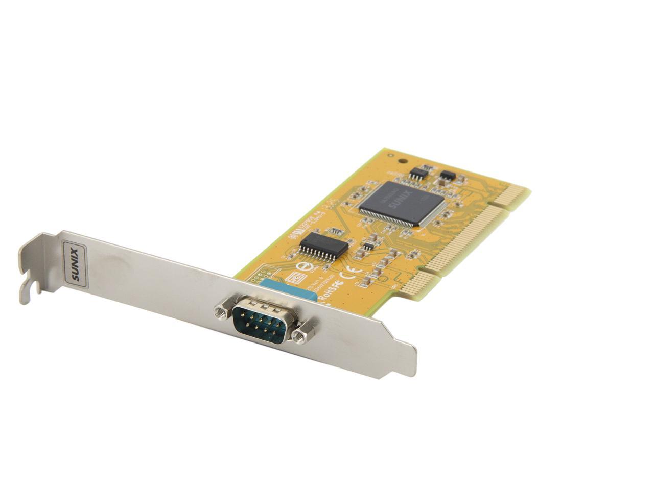| Specifications | Serial Communication -Interface: RS-232 -Controller: SUNIX UL7512EQ (16C650 UART Compatible) -BUS: Universal PCI 64/32bit 3.3V/5V PCI Ver 3.0, 2.3, 2.2, 2.1 -No. of Port: 1port -IRQ & IO: Assigned by System -FIFO: 32byte Hardware -Signal: DCD, TxD, RxD, RTS, CTS, DTR, DSR, GND, RI -Baud rate: 50bps ~115.2Kbps -Stop bit: 1, 1.5, 2 -Parity: even, odd, none, mark, space -Flow Control: None, Xon/Xoff, RTS/CTS -Protection: +/-2KV ESD protection for each signal Human Body Model (HBM) -PCB Connector: DB9 Male Driver Support -Windows Client: XP/Vista/7/8/8.1 (X86/X64) -Windows Server: 2000 / 2003 / 2008 / 2008 R2 / 2012 / 2012 R2 (X86/X64) -Windows Embedded: Windows CE 4.2/5.0/6.0 XP Embedded / POSReady 2009 / POSReady 7 / Embedded System -Linux: Linux 2.4.x / 2.6.x -DOS: DOS *FreeBSD: FreeBSD 5.3~5.5 / 6.0~6.4 *QNX: QNX 6.3.2 / 6.4.0 *IBM OS/2: WARP 3 / WARP 4 *SCO UnixWare: UnixWare 7.1.3 /7.1.4 / Open Server 5.0.7 / 6.0 *Sun Microsystems: Solaris 10 Regulatory Approvals -Hardware CE EN55022 Class B, EN55024, EN61000-3-2, EN61000-3-3, VCCI Class B FCC Part 15 Class B, BSMI: CNS13438, C-Tick: CISPR22 AS/NZS, RoHS -Software Microsoft WHQL Windows: Windows Client: XP/Vista/7/8/8.1 (X86/X64) Windows Server: 2000/2003/2008/2008 R2/2012/2012 R2 (X86/X64) |